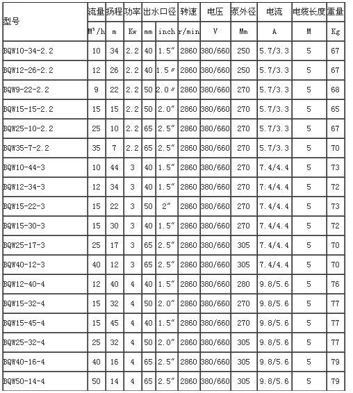 BQW防爆礦用潛水排污泵技術(shù)參數(shù)